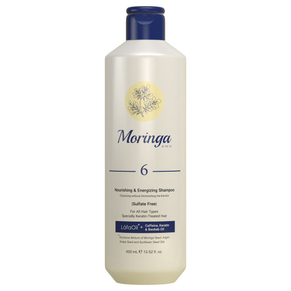 شامپو مغذی و انرژی بخش بدون سولفات 6 مورینگا یک شامپو کاملا ایرانی از برند مورینگا است. این محصول مناسب برای انواع مو به ویژه مو های کراتینه بوده و بدون سولفات می باشد. وجود سولفات در شامپو باعث تمیز کنندگی بیش از حد مو شده و رطوبت طبیعی مو را می گیرد.